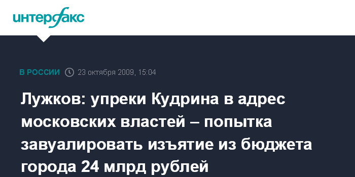 "Я утверждаю, что господин Кудрин, докладывая в Госдуме проект бюджета-2010, был, мягко говоря, неточен в формулировках", - заявил Лужков в эксклюзивном интервью "Интерфаксу" в пятницу. "Он попросту перепутал цифры планируемого еще в докризисное время бюджета 2009 года с его фактическим исполнением", - пояснил столичный градоначальник.