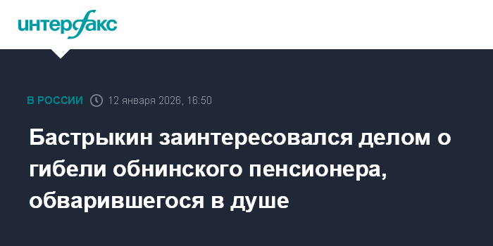 Москва. 12 января. INTERFAX.RU - Председатель Следственного комитета России Александр Бастрыкин распорядился представить доклад о ходе расследования уголовного дела по факту гибели пожилого мужчины, обварившегося кипятком в Обнинске (Калужская область), сообщила пресс-служба регионального СУ СКР.