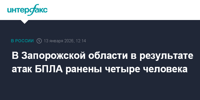 Москва. 13 января. INTERFAX.RU - В Запорожской области в результате атак БПЛА ранены четыре человека, сообщил губернатор региона Евгений Балицкий.