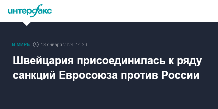 Швейцария присоединилась к ряду санкций Евросоюза против России