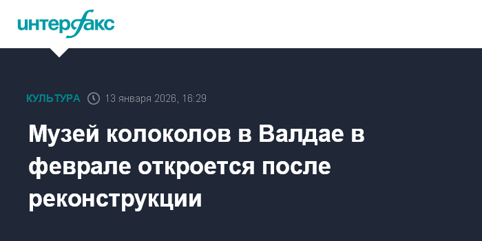 Москва. 13 января. INTERFAX.RU - В Валдае Музей колоколов откроют после реконструкции 5 февраля, сообщили "Интерфаксу" в Новгородском государственном музее-заповеднике.