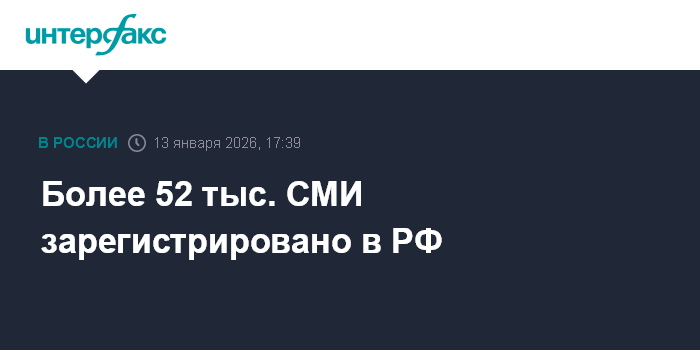 Более 52 тыс. СМИ зарегистрировано в РФ