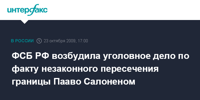 ФСБ РФ возбудила уголовное дело по факту незаконного пересечения границы Пааво Салоненом