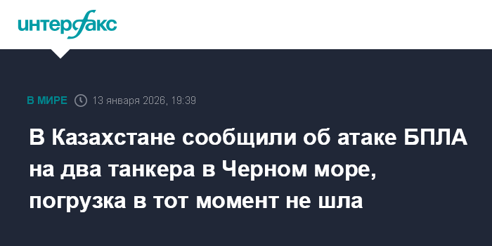 "Министерство энергетики Республики Казахстан подтверждает информацию об инцидентах, произошедших 13 января 2026 года в акватории Черного моря в районе морского терминала КТК с двумя судами, задействованными в транспортировке казахстанской экспортной нефти", - говорится в сообщении ведомства, распространенном во вторник вечером.