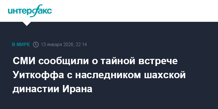 "По его словам, на минувших выходных Уиткофф в обстановке секретности встретился с наследным принцем Ирана в изгнании с целью обсудить протесты с Иране", - информирует портал.