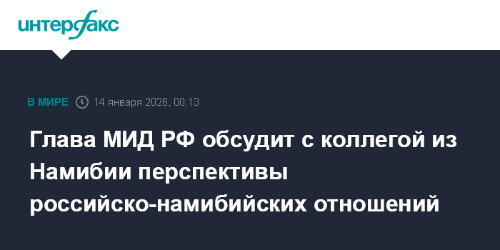 Глава МИД РФ обсудит с коллегой из Намибии перспективы российско-намибийских отношений