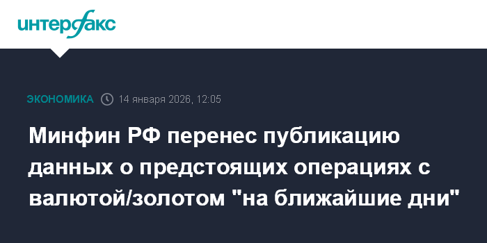 Минфин РФ перенес публикацию данных о предстоящих операциях с валютой/золотом "на ближайшие дни"