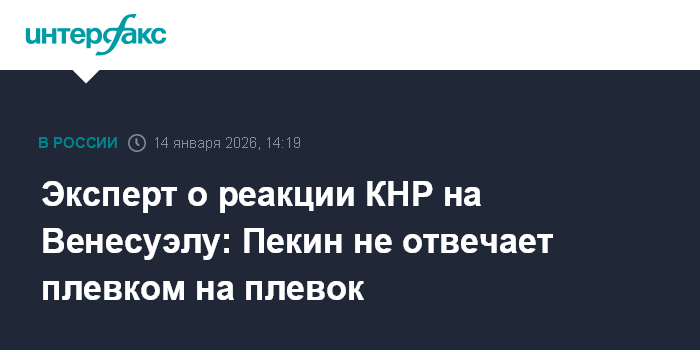 Эксперт о реакции КНР на Венесуэлу: Пекин не отвечает плевком на плевок