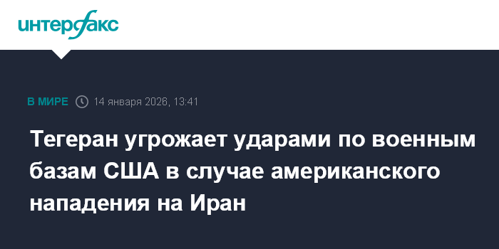 Ранее президент США Дональд Трамп пригрозил принять жесткие меры против Ирана в ответ на действия властей по подавлению масштабных беспорядков. При этом американские СМИ отмечают, что Трамп, по их данным, еще не принял решение о том, на какие именно меры он готов пойти.