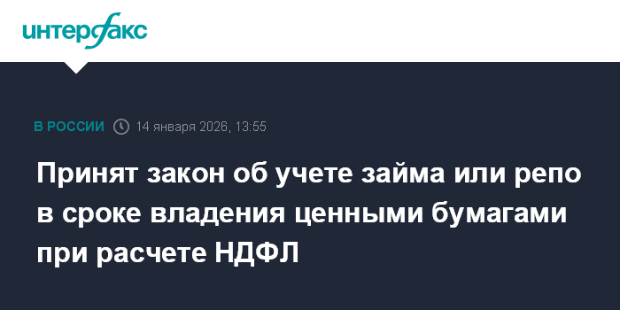 Принят закон об учете займа или репо в сроке владения ценными бумагами при расчете НДФЛ