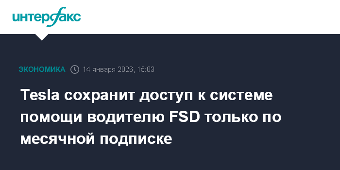 Москва. 14 января. INTERFAX.RU - Американская Tesla после 14 февраля прекратит продажу системы помощи водителю Full-Self Driving (FSD) и сделает ее доступной лишь по месячной подписке, сообщил глава компании Илон Маск в соцсети X.
