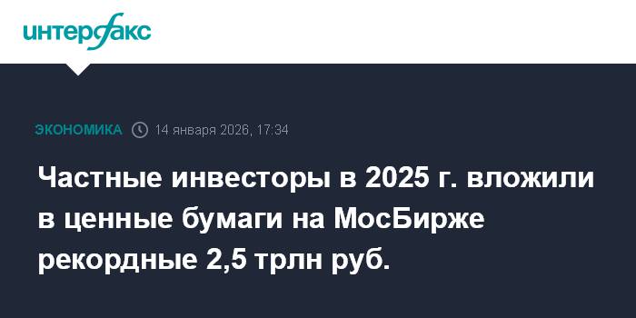Частные инвесторы в 2025 г. вложили в ценные бумаги на МосБирже рекордные 2,5 трлн руб.