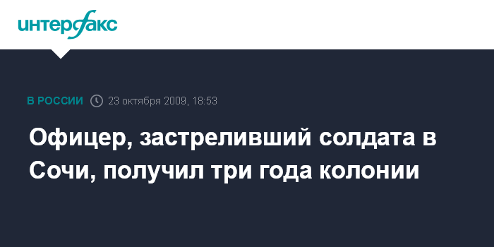 Сочи. 23 октября. INTERFAX.RU - Сочинский гарнизонный военный суд в пятницу приговорил к трем годам лишения свободы в колонии-поселении офицера, который по неосторожности выстрелил в солдата.
