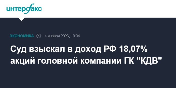 Суд взыскал в доход РФ 18,07% акций головной компании ГК "КДВ"