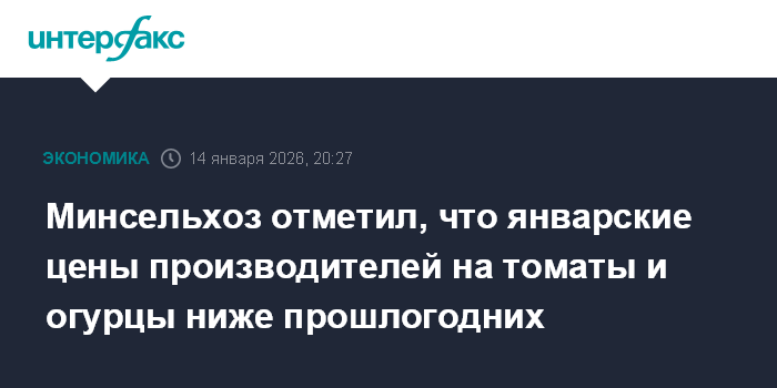 Минсельхоз отметил, что январские цены производителей на томаты и огурцы ниже прошлогодних