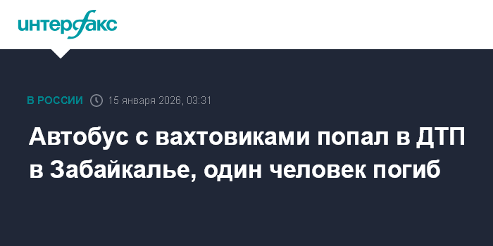 Москва. 15 января. INTERFAX.RU - Автобус, перевозивших вахтовых рабочих, столкнулся на федеральной трассе в Забайкальском крае с грузовиком, есть погибший, сообщает Госавтоинспекция региона.