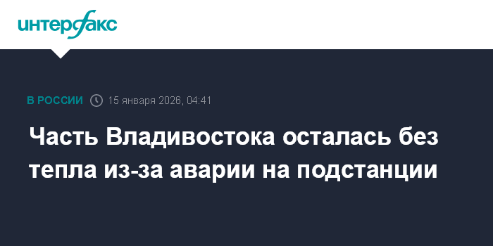 Москва. 15 января. INTERFAX.RU - На подстанции "Загородная" произошла авария, из-за которой без тепла и горячей воды оказались более 90 многоквартирных домов во Владивостоке, сообщила региональная прокуратура.