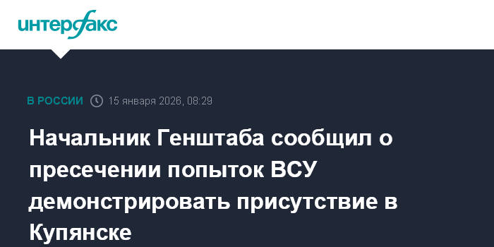 Начальник Генштаба сообщил о пресечении попыток ВСУ демонстрировать присутствие в Купянске