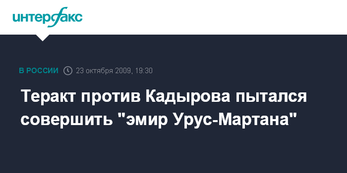 Грозный. 23 октября. INTERFAX.RU - Установлена личность уничтоженного в Грозном террориста, который пытался на автомашине прорваться к объекту, где находился депутат Госдумы Адам Делимханов и ожидалось прибытие президента Чечни Рамзана Кадырова.