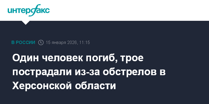 Москва. 15 января. INTERFAX.RU - Один человек погиб, еще трое получили ранения в Херсонской области в результате обстрелов со стороны ВСУ, сообщил губернатор региона Владимир Сальдо в четверг в своем телеграм-канале.