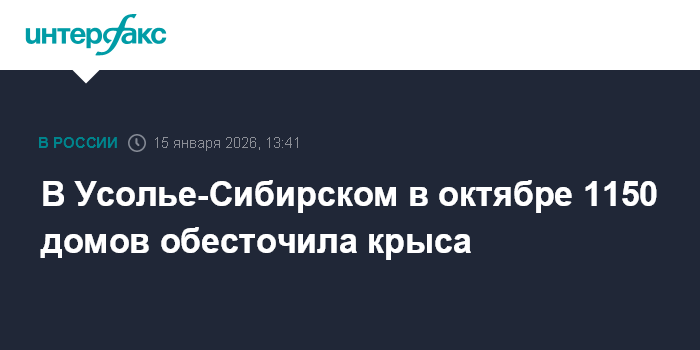 Москва. 15 января. INTERFAX.RU - Пожар на подстанции 14 октября, из-за которого часть города Усолье-Сибирское на сутки осталась без электричества, вызвала крыса, установила Иркутская транспортная прокуратура.