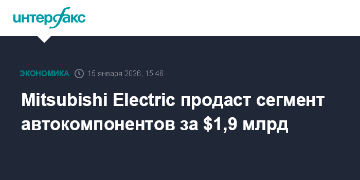Москва. 15 января. INTERFAX.RU - Японская Mitsubishi Electric Corp. продаст сегмент автомобильных компонентов и планирует запросить заявки на него, пишет Bloomberg со ссылкой на источники.