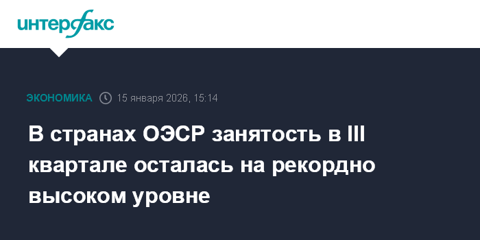 Москва. 15 января. INTERFAX.RU - В странах Организации экономического сотрудничества и развития (ОЭСР) занятость в третьем квартале 2025 года составила 70,3%, что является самым высоким уровнем с начала сбора данных в 2005 году.