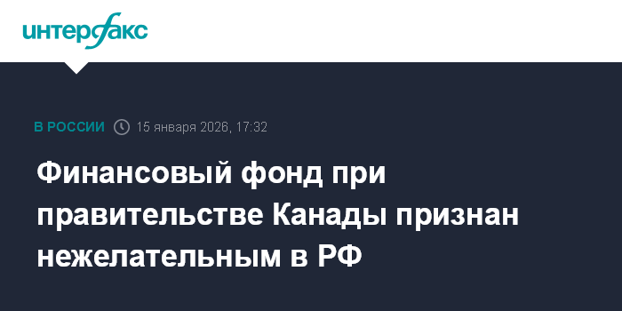 Финансовый фонд при правительстве Канады признан нежелательным в РФ
