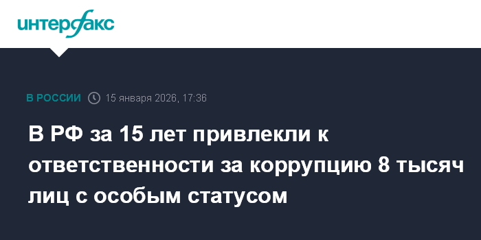 В РФ за 15 лет привлекли к ответственности за коррупцию 8 тысяч лиц с особым статусом