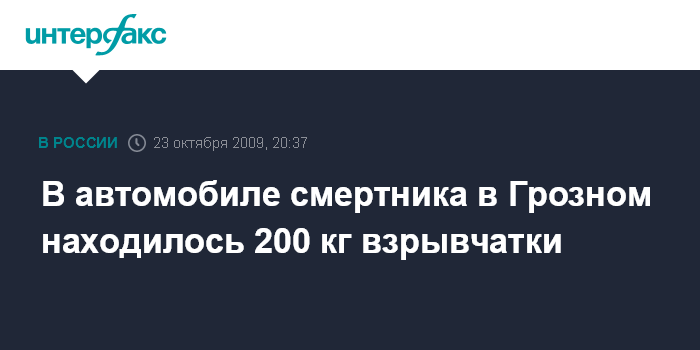 В автомобиле смертника в Грозном находилось 200 кг взрывчатки