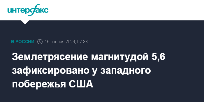 Землетрясение магнитудой 5,6 зафиксировано у западного побережья США