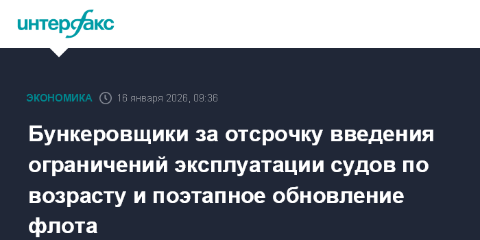Москва. 16 января. INTERFAX.RU - Участники российского рынка бункеровочных услуг предупреждают о негативных последствиях ввода ограничений эксплуатации судов-бункеровщиков по критериям возраста, предлагают законодательно установить обоснованную поэтапность обновления флота по типам судов с учетом возможностей российской судостроительной отрасли.