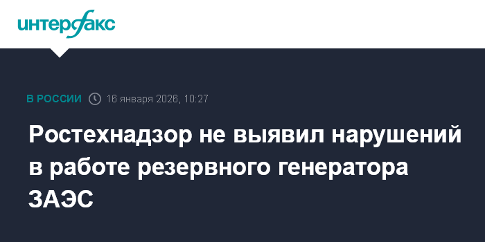 Москва. 16 января. INTERFAX.RU - Ростехнадзор проверил состояние дизельного генератора, который является одним из элементов системы резервного энергоснабжения Запорожской АЭС, нарушений не выявлено, сообщили представители станции в пятницу.