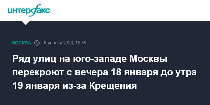 Ряд улиц на юго-западе Москвы перекроют с вечера 18 января до утра 19 января из-за Крещения