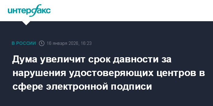 Дума увеличит срок давности за нарушения удостоверяющих центров в сфере электронной подписи