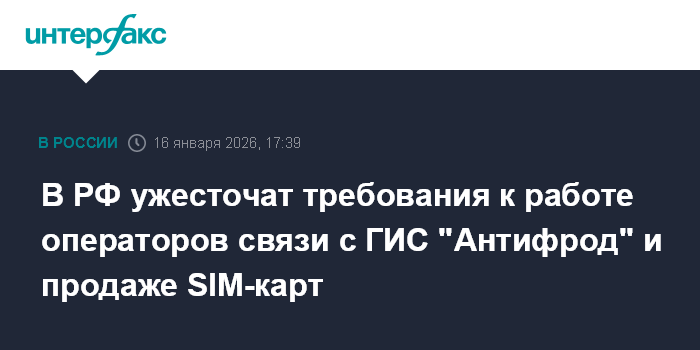 В РФ ужесточат требования к работе операторов связи с ГИС "Антифрод" и продаже SIM-карт