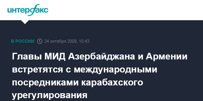 Баку. 24 октября. INTERFAX.RU - Сопредседатели Минской группы ОБСЕ по урегулированию Карабахского конфликта встретятся в Люксембурге с министрами иностранных дел Азербайджана и Армении.