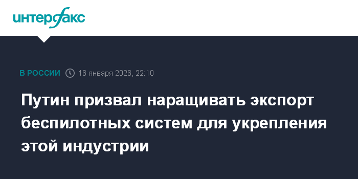 Путин призвал наращивать экспорт беспилотных систем для укрепления этой индустрии