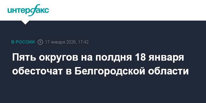 Москва. 17 января. INTERFAX.RU - Электричество отключат на полдня 18 января в ряде округов Белгородской области, сообщил губернатор Вячеслав Гладков.