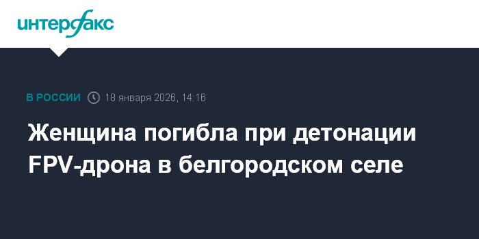 Женщина погибла при детонации FPV-дрона в белгородском селе