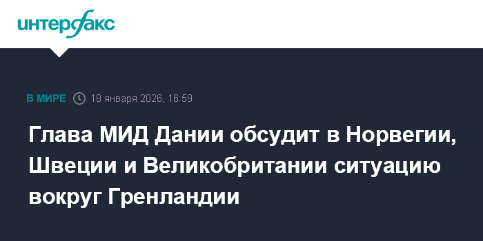 Глава МИД Дании обсудит в Норвегии, Швеции и Великобритании ситуацию вокруг Гренландии