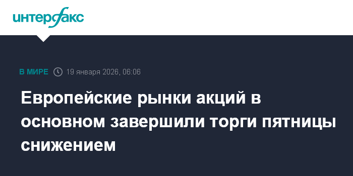 Москва. 19 января. INTERFAX.RU - Европейские фондовые индексы в основном завершили торги в пятницу в минусе, исключением стал испанский индикатор.
