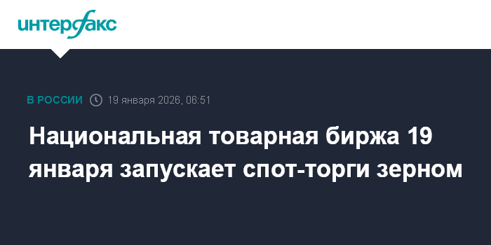 Москва. 19 января. INTERFAX.RU - Национальная товарная биржа (НТБ) в понедельник начинает торги на спот-рынке зерна в режиме двухстороннего анонимного аукциона, сообщает торговая площадка.