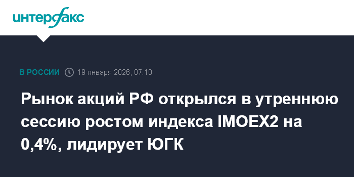 Москва. 19 января. INTERFAX.RU - Рынок акций РФ на старте торгов утренней сессии на МосБирже в понедельник продолжил рост на ожиданиях нового раунда переговоров США и России по украинскому урегулированию, данных Росстата о замедлении инфляции в 2025 году, а также на фоне дорожающей нефти (Brent торгуется выше $64 за баррель) из-за сохраняющейся геополитической напряженности на Ближнем Востоке. Индекс IMOEX2 за минуту утренних торгов вырос на 0,4%, превысив 2745 пунктов.