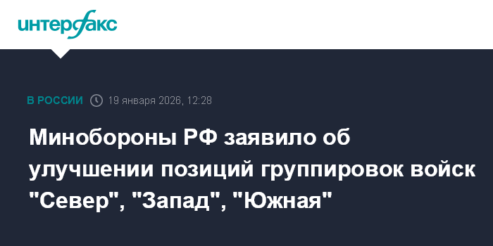 Минобороны РФ заявило об улучшении позиций группировок войск "Север", "Запад", "Южная"