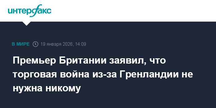 Москва. 19 января. INTERFAX.RU - Премьер Британии Кир Стармер в понедельник заявил, что взаимное введение пошлин странами Европы и США из-за проблемы Гренландии не принесет кому-либо выгоду.