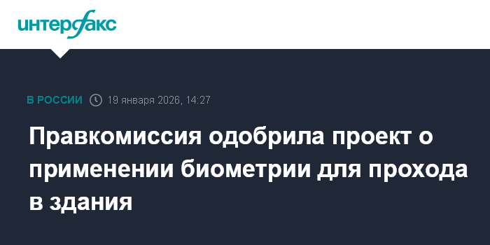Москва. 19 января. INTERFAX.RU - Правительственная комиссия по законопроектной деятельности одобрила законопроект, упрощающий использование биометрии в системах управления доступом в здания, сообщил вице-премьер РФ Дмитрий Григоренко.