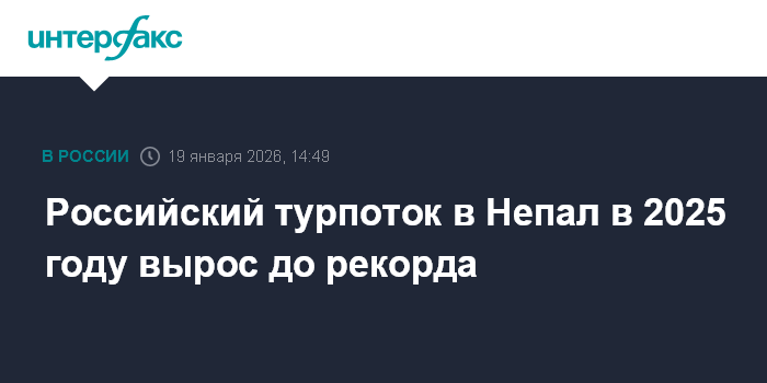 Москва. 19 января. INTERFAX.RU - Турпоток из России в Непал в 2025 году вырос на 10% и достиг рекордных показателей, сообщает российское посольство в Катманду со ссылкой на Совет Непала по туризму.