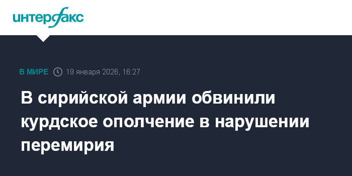 Москва. 19 января. INTERFAX.RU - Вооруженные группировки, включая курдские отряды и силы, лояльные прежним властям Сирии, пытаются сорвать режим прекращения огня, который накануне достигли Дамаск и Сирийские демократические силы (СДС), сообщает в понедельник агентство САНА со ссылкой на командование сирийской армии.