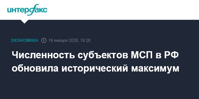 Москва. 19 января. INTERFAX.RU - Численность субъектов малого и среднего предпринимательства (МСП) в РФ на начало 2026 года обновила исторический максимум и составила 6 млн 835 тыс. предприятий, говорится в сообщении Минэкономразвития.